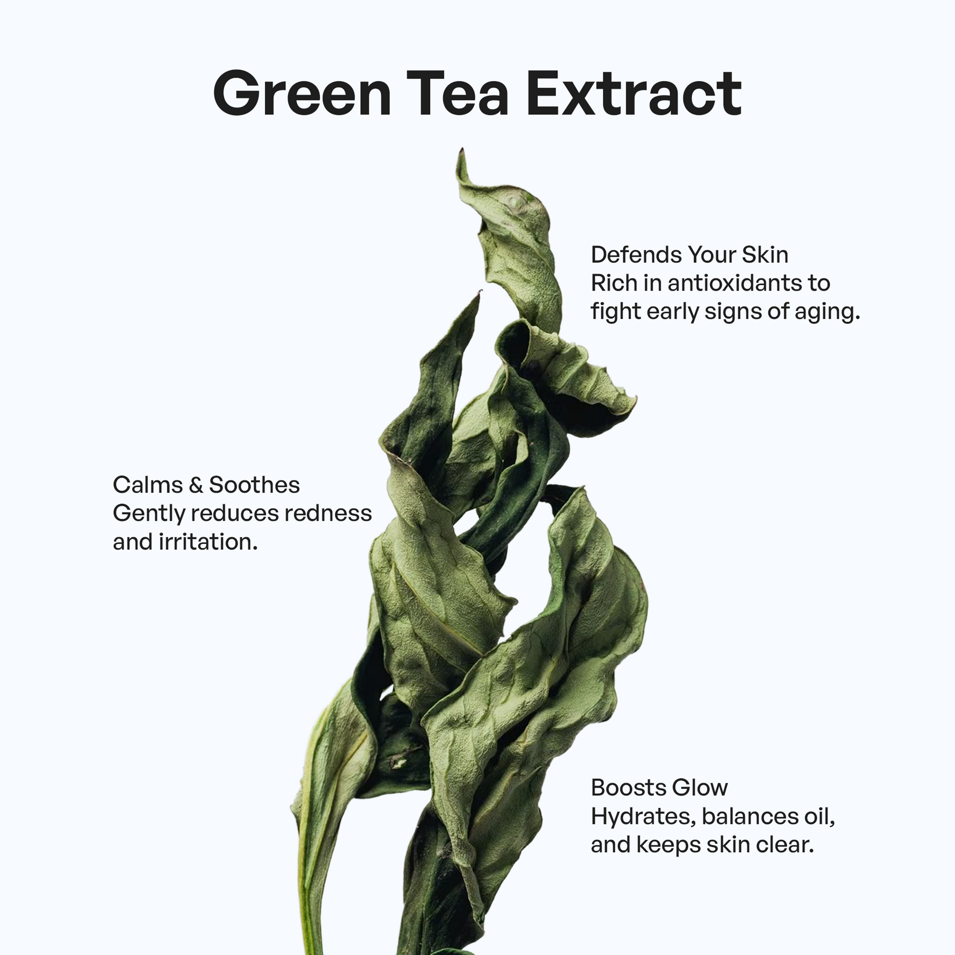 Green Tea Extract – Derived from the leaves of the Camellia sinensis plant, this extract is abundant in antioxidants, offering protective and soothing benefits to the skin.